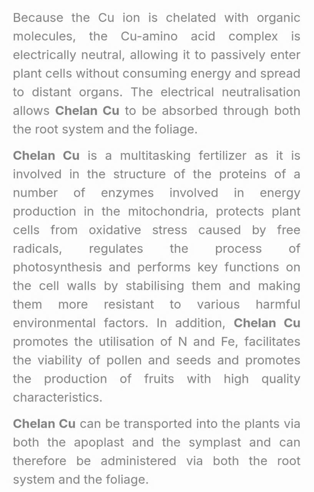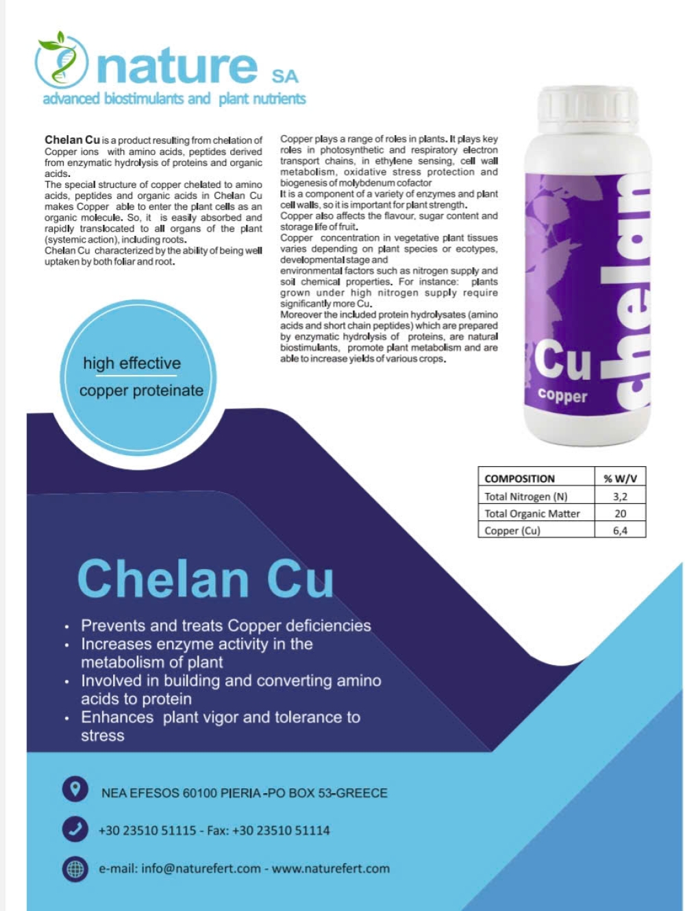 PHÂN BÓN LÁ ĐỒNG HỮU CƠ SINH HỌC -CHELAN Cu (5% Cu +6% N+9% Amino +22 % OM+15% Fulvic acids)