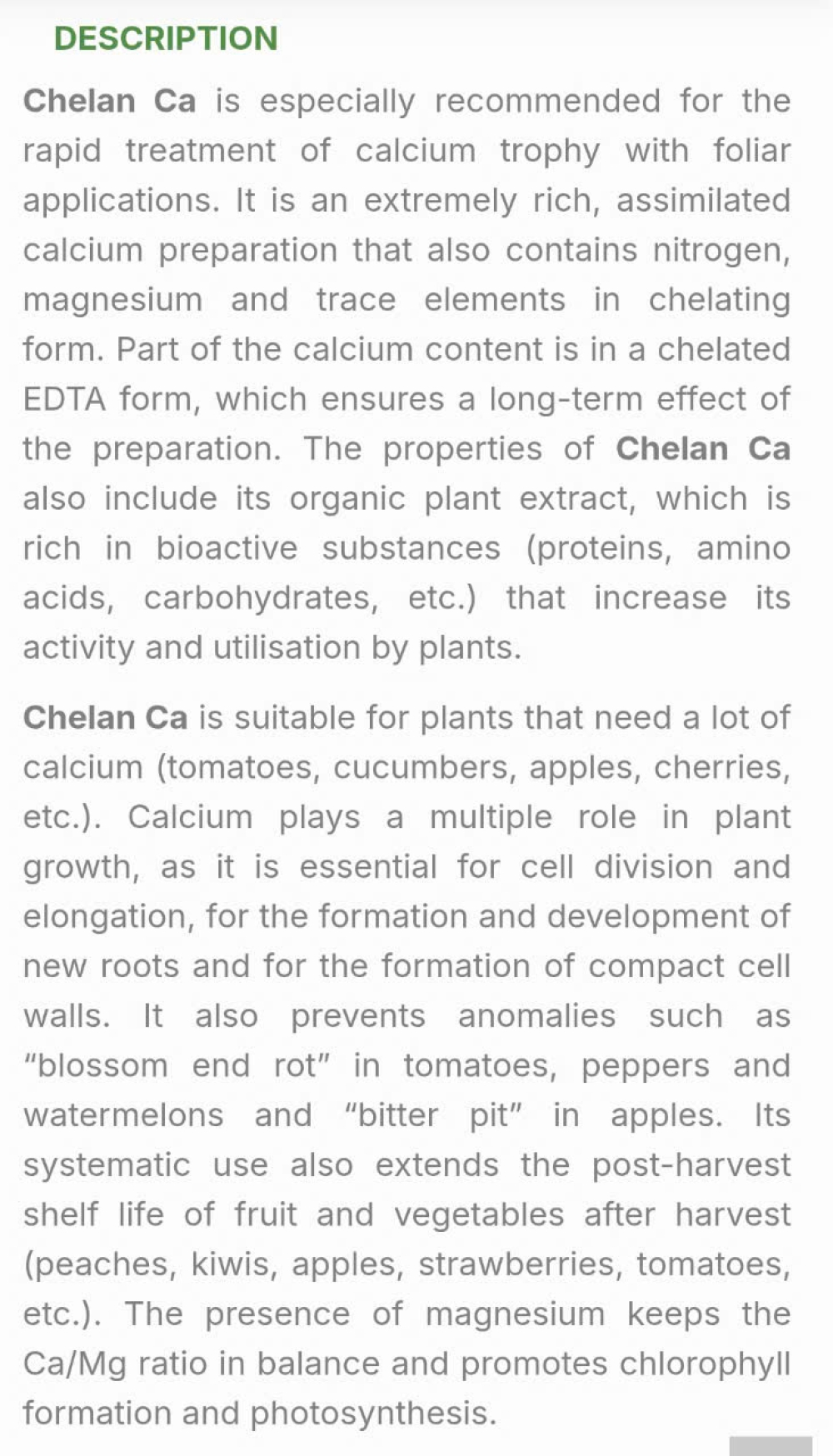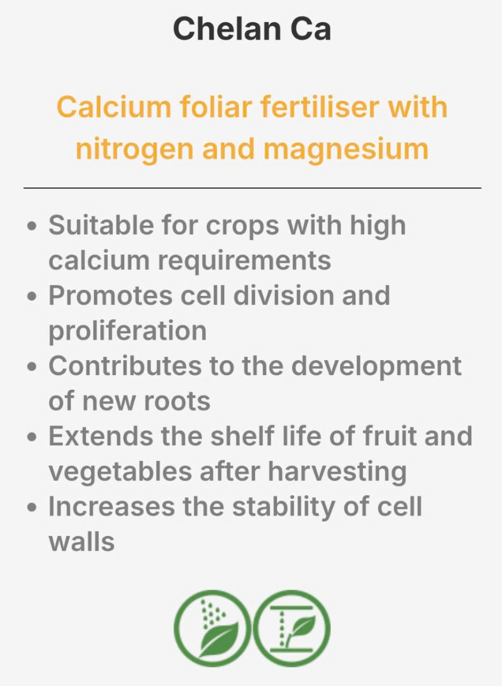 SP MỚI PHÂN BÓN LÁ - CHELAN Ca(8%N +14% CaO + 1,9% MgO +Te (Fe,Cu,Zn,Mn,Mo ) Hy Lạp