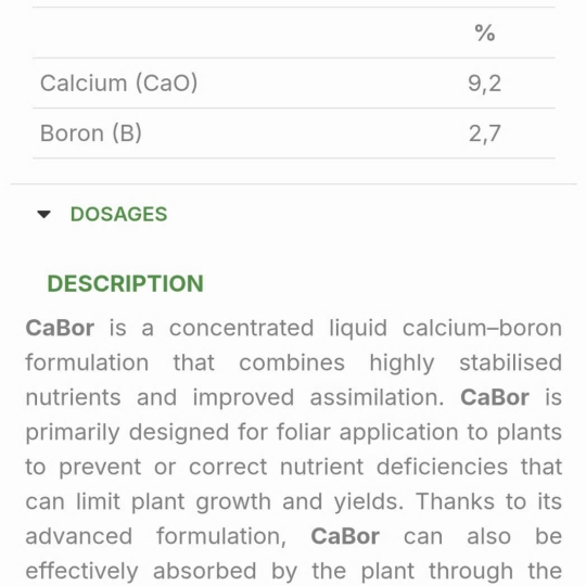 SP MỚI PHÂN BÓN LÁ CANXI BO - CABOR (9,2 CaO + 2,7% B) Hy Lạp